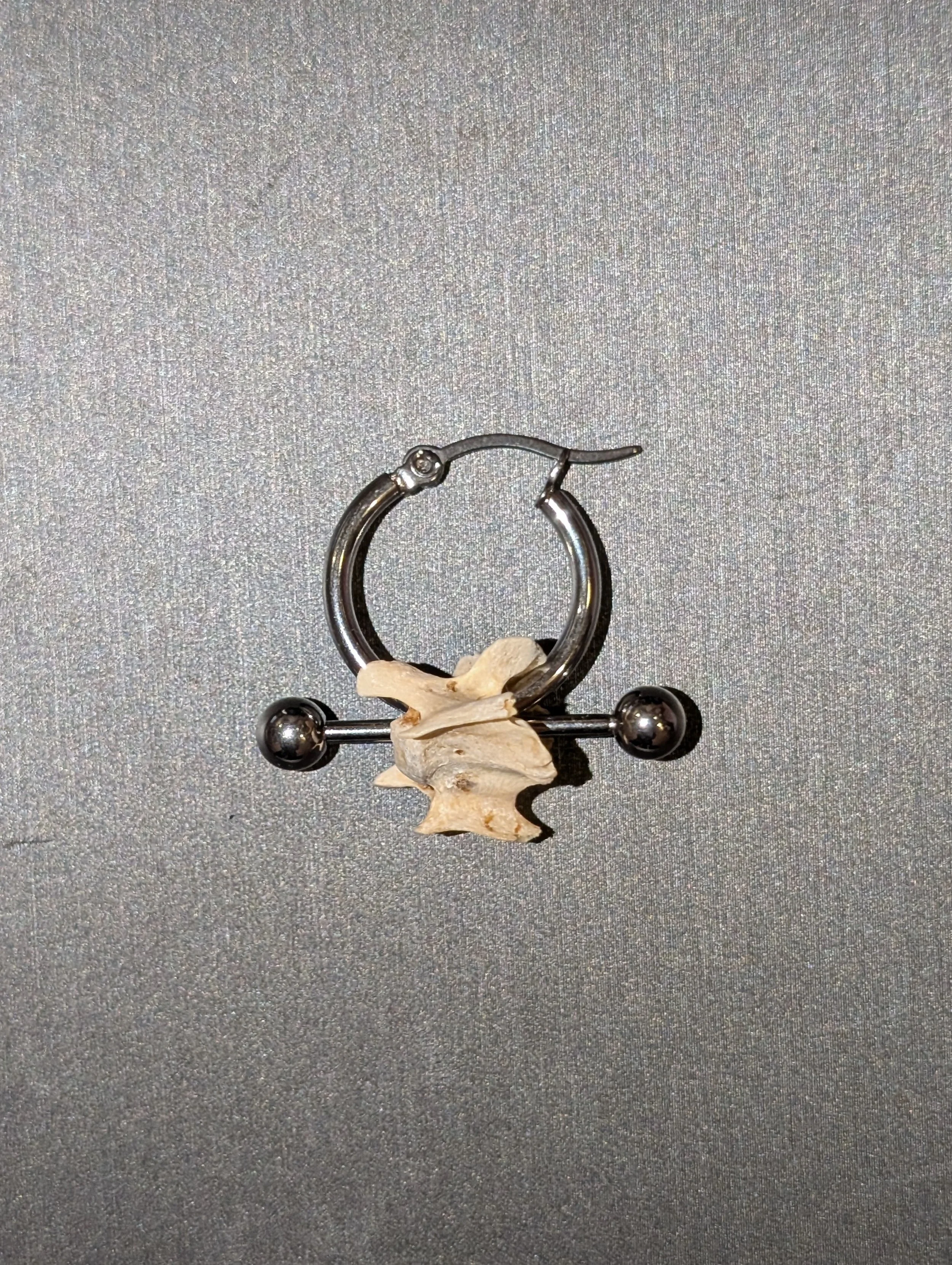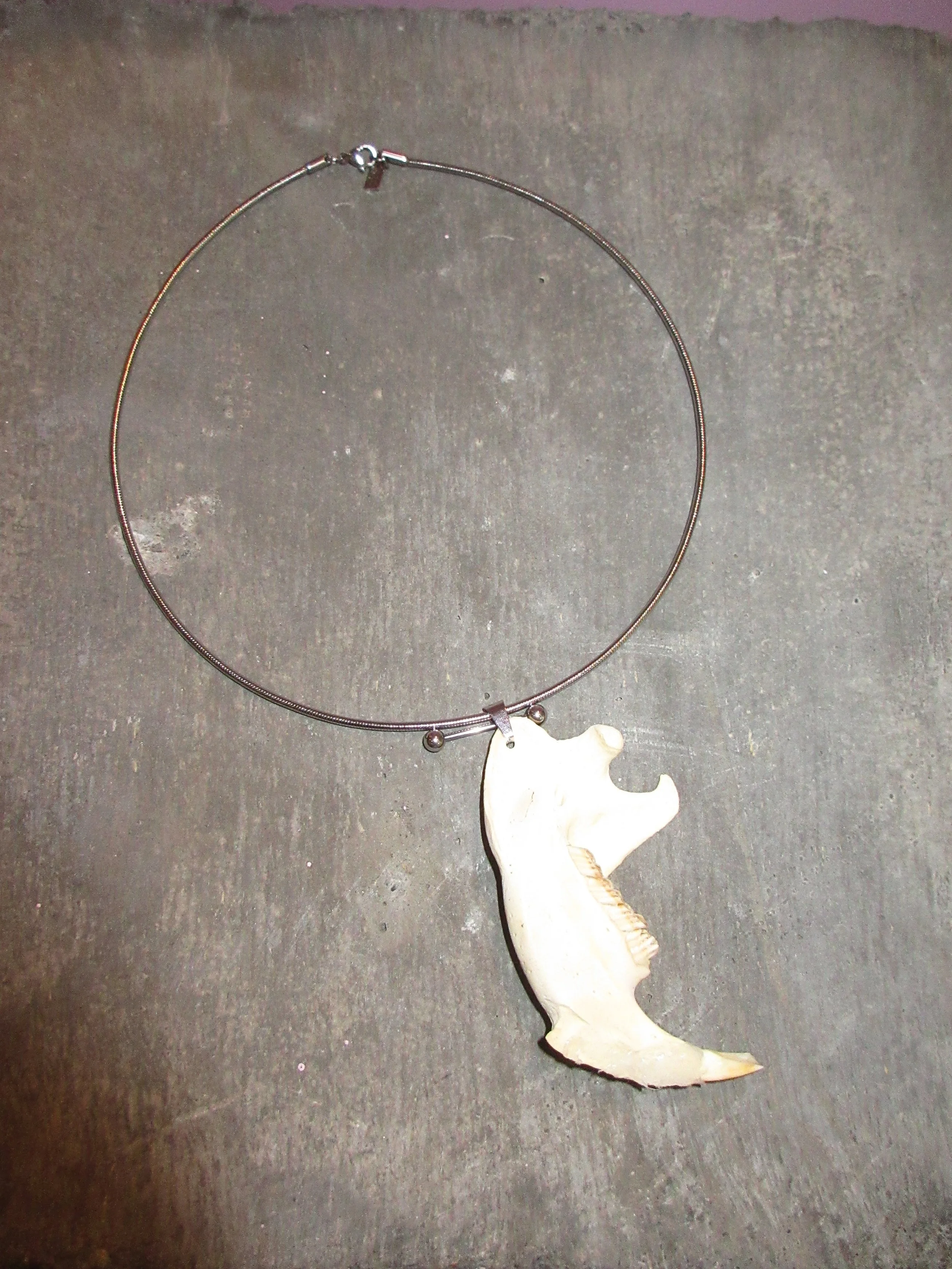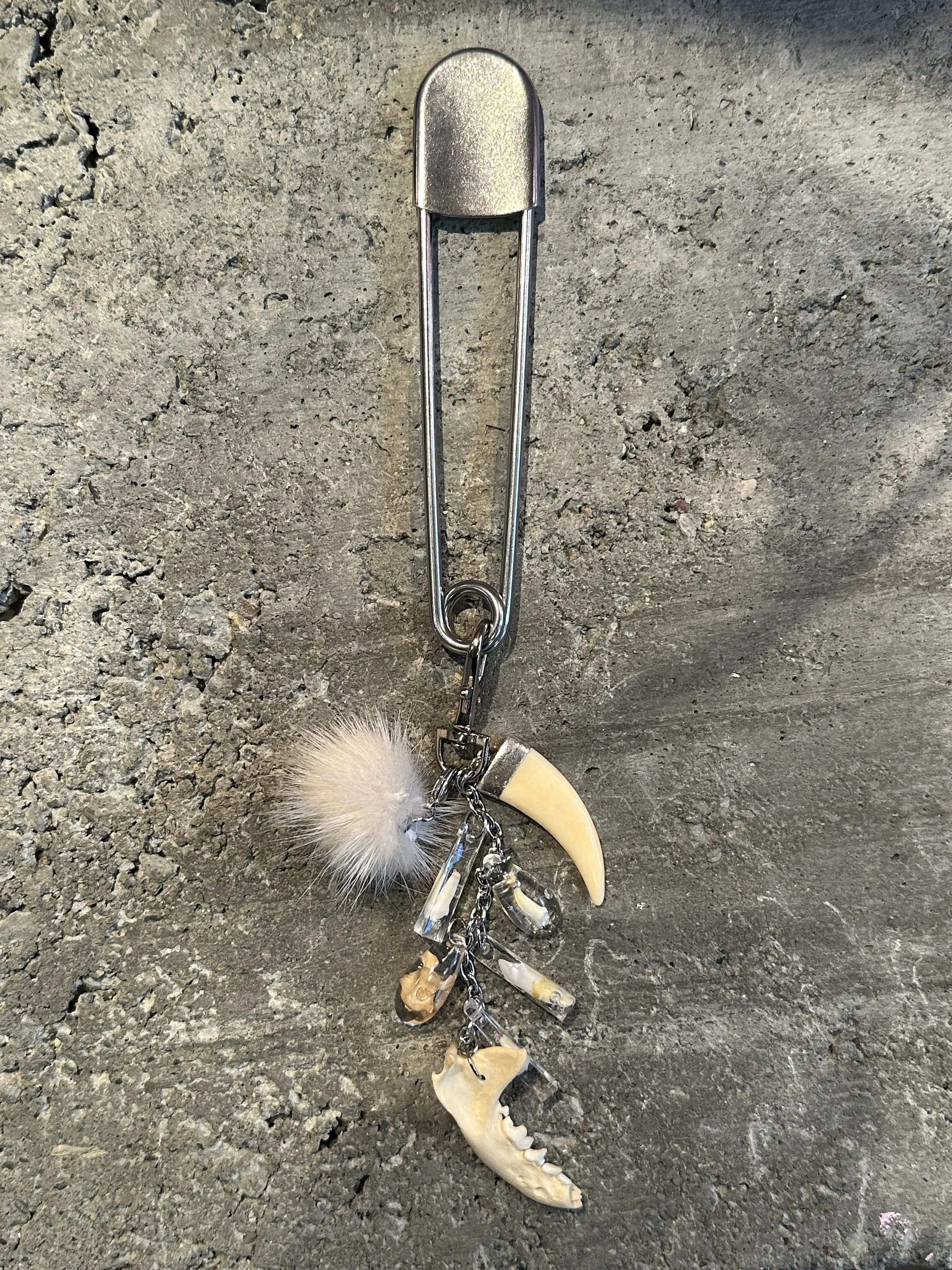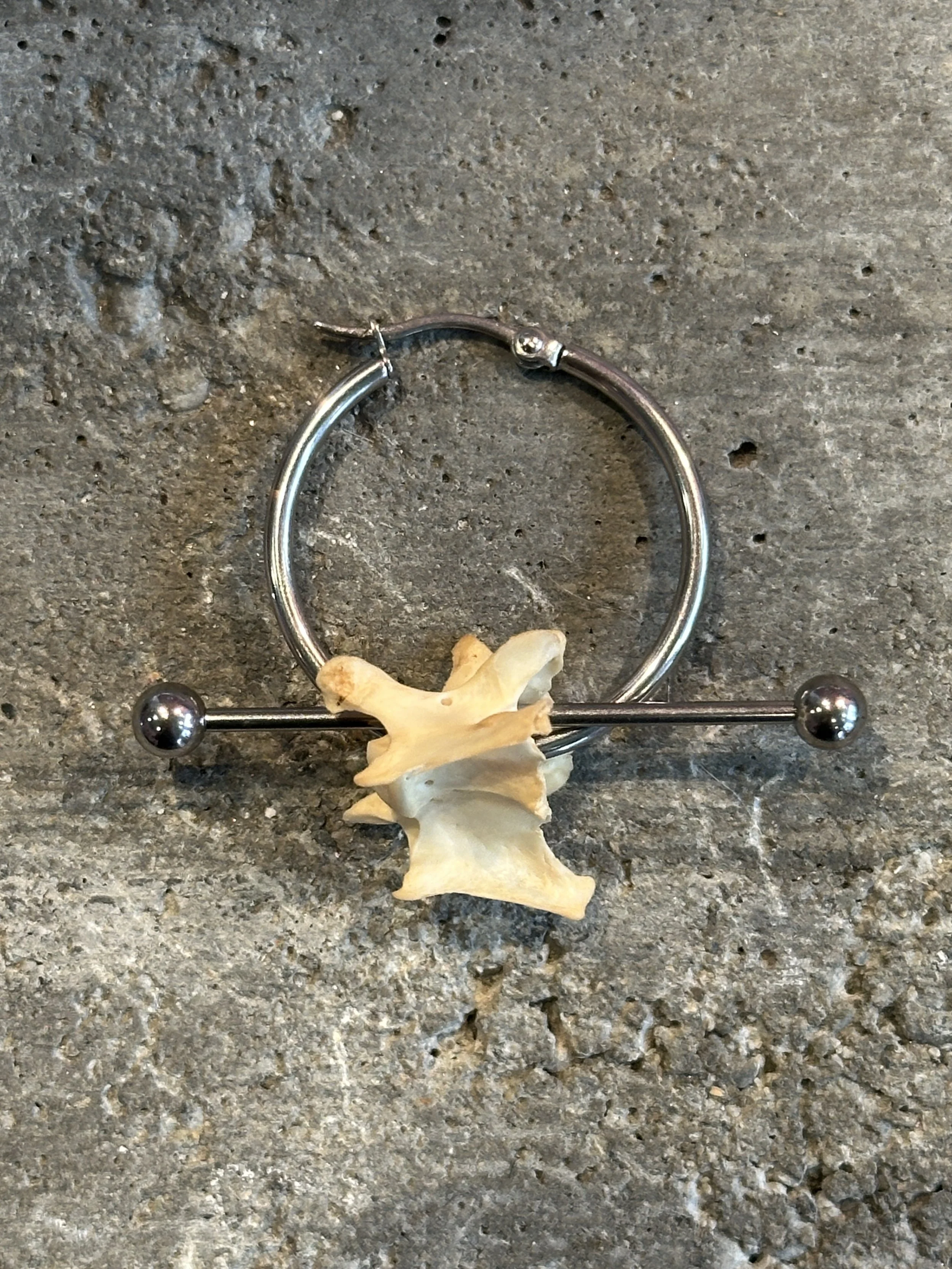 “My brand is all about repurposing materials and finding new ways to decorate myself and others through a neopunk vision that cites many sources--bringing industrial piercing hardware, reworked jewelry scraps, fur, bone, and hair together to make new things.”
