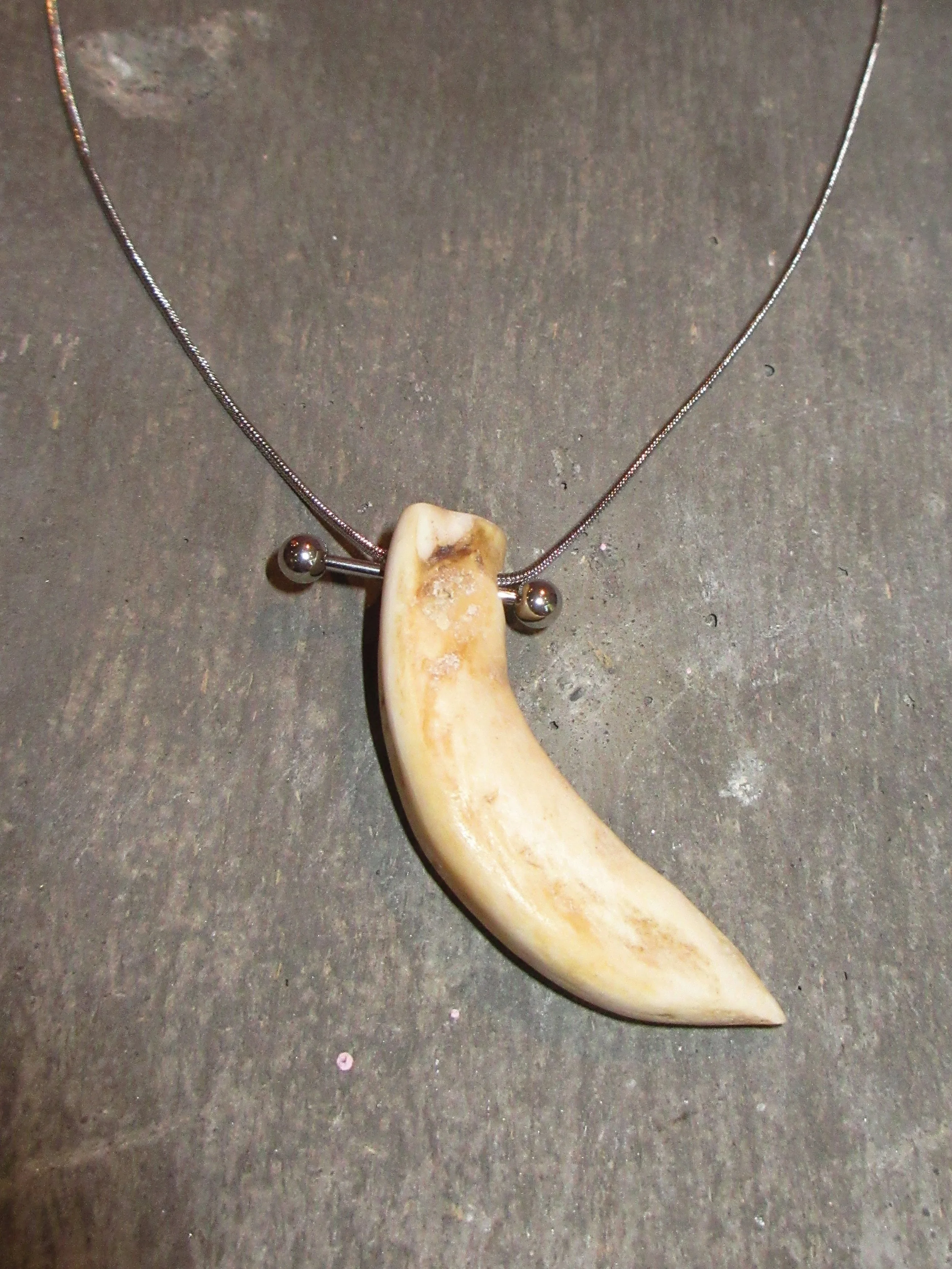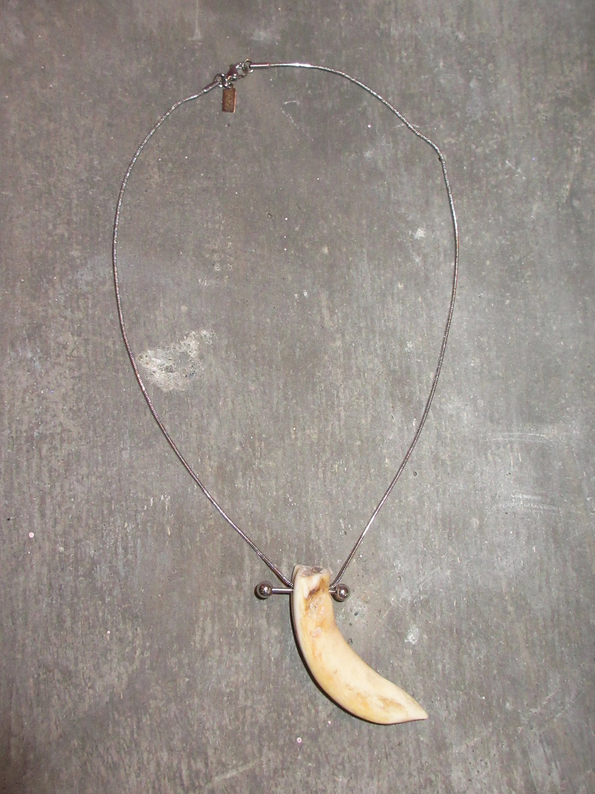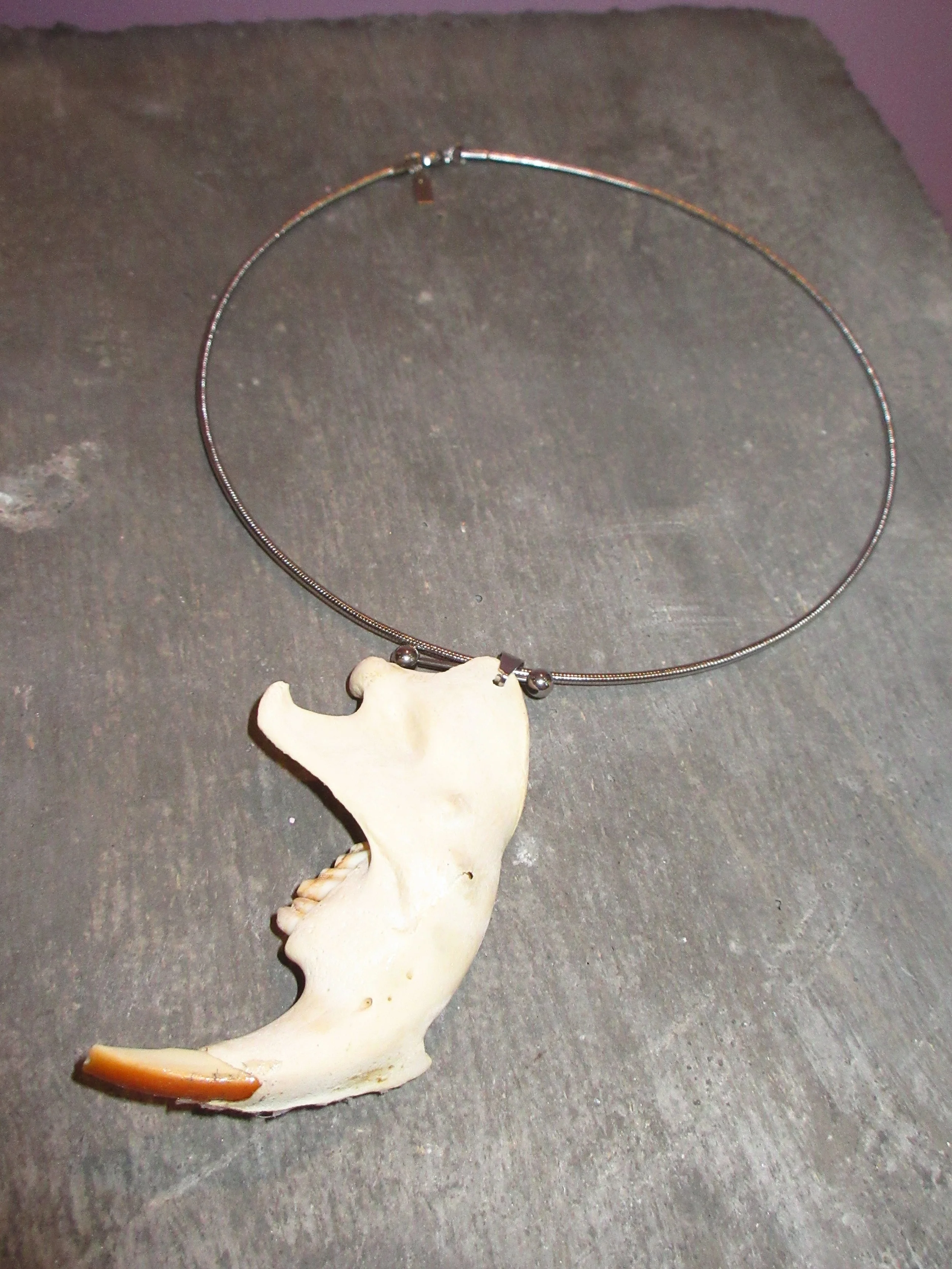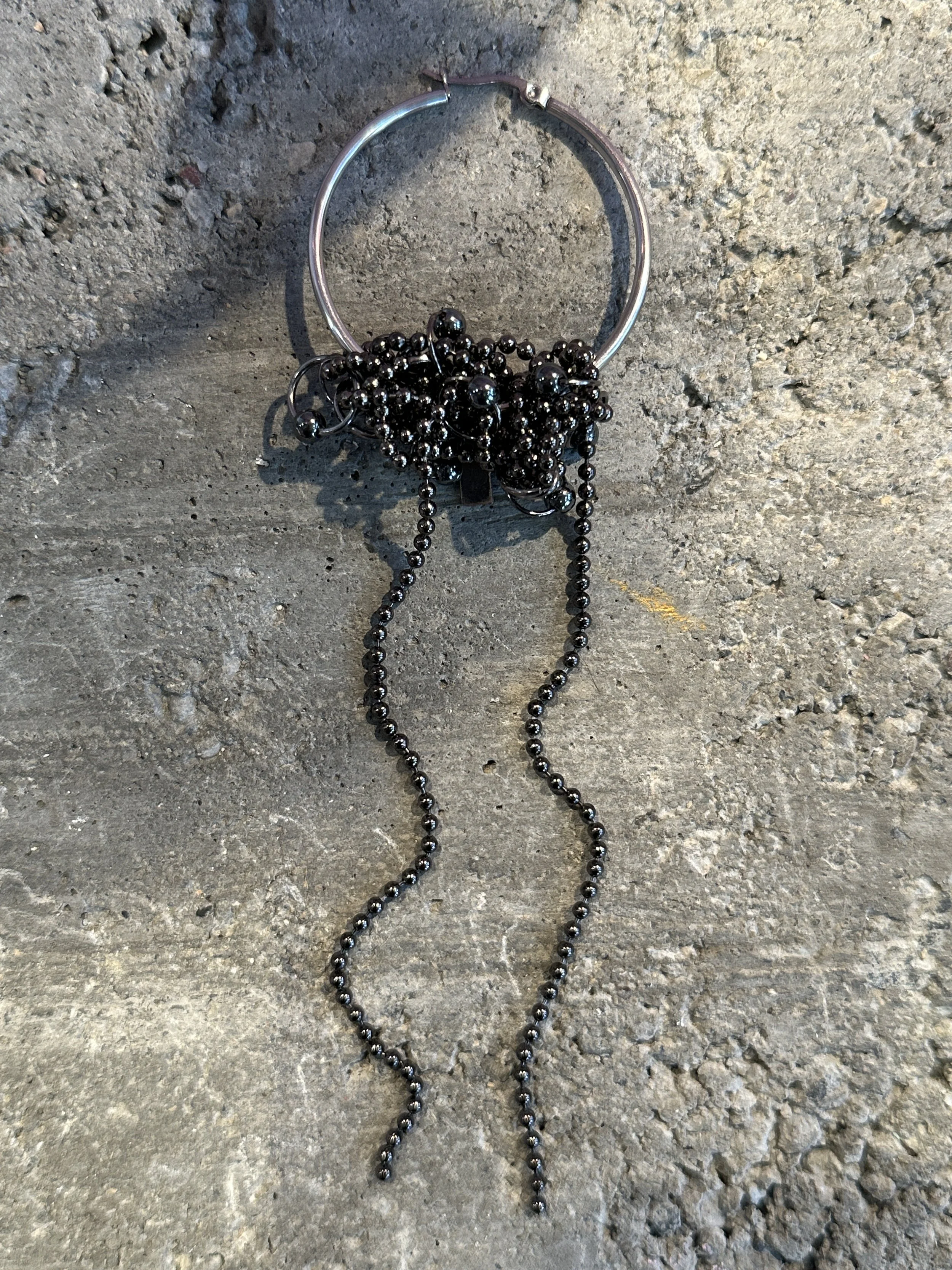 “My brand is all about repurposing materials and finding new ways to decorate myself and others through a neopunk vision that cites many sources--bringing industrial piercing hardware, reworked jewelry scraps, fur, bone, and hair together to make new things.”