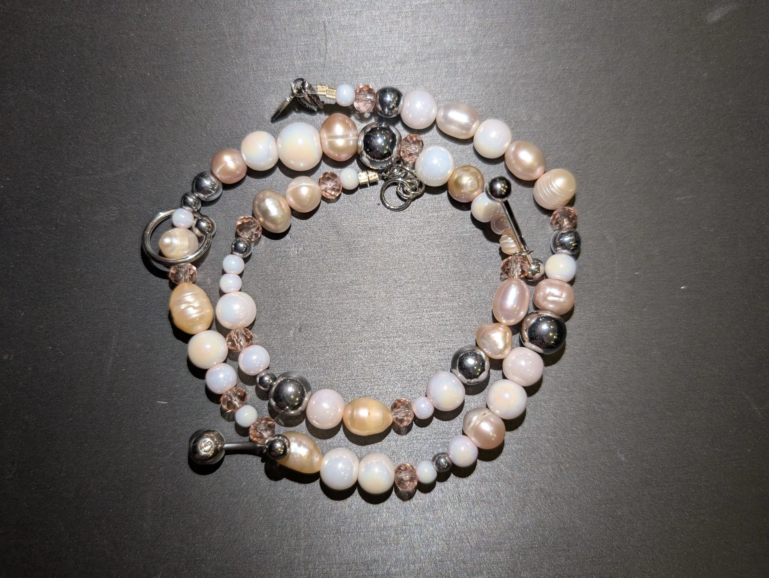 ca22 jewelry › ca22 pink mixed crystal pierced pearl necklace Image 1 of 2 Image 2 of 2 ca22 pink mixed crystal pierced pearl necklace $115.00 Quantity: Add To Cart Added!