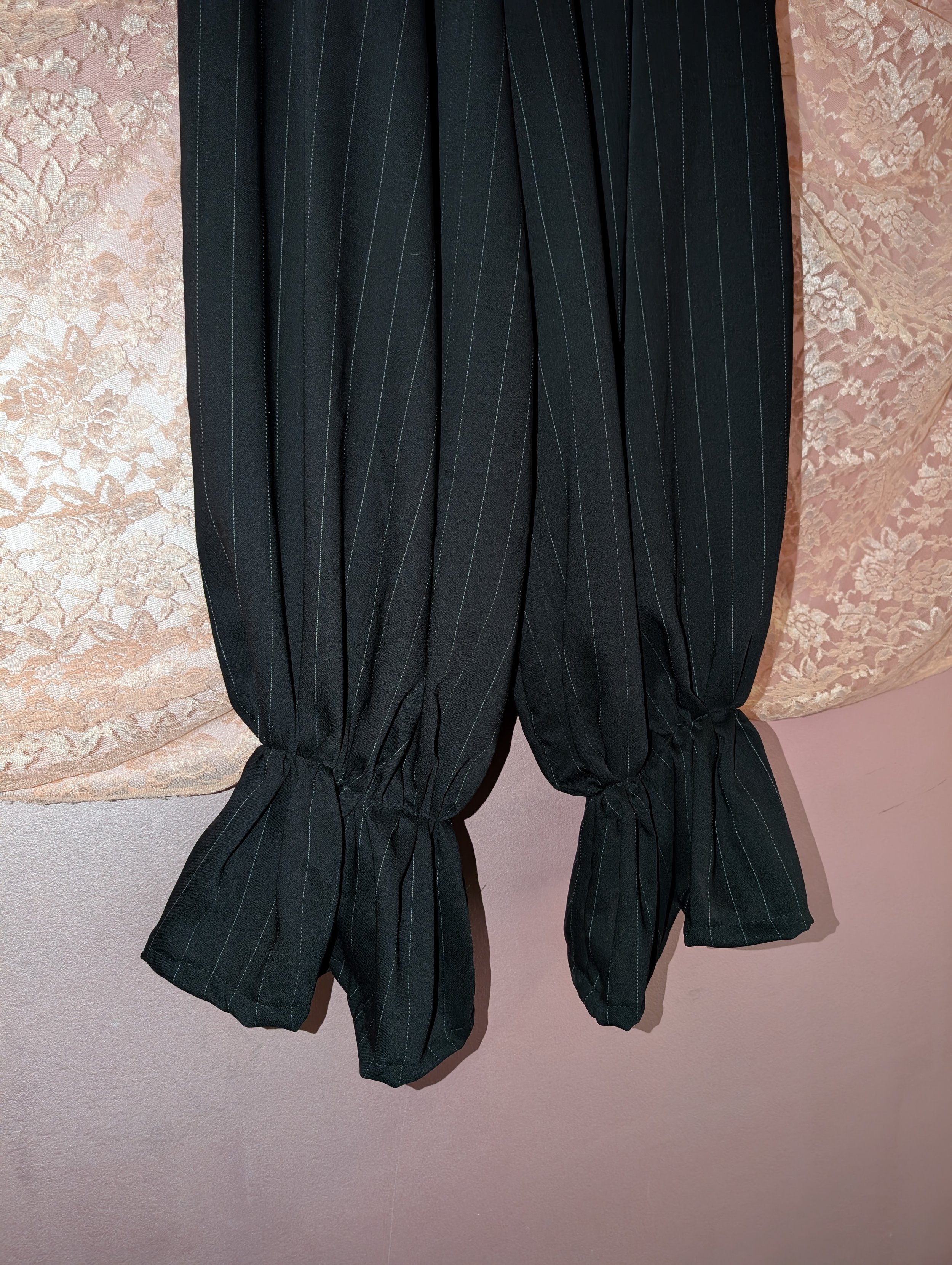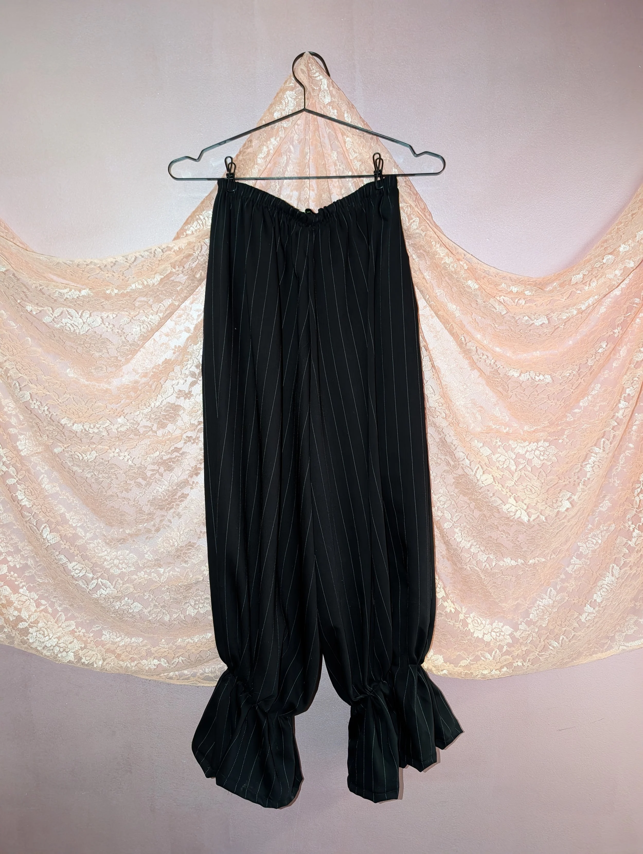 monjia › monjia Black Ruffle Pants Image 1 of 3 Image 2 of 3 Image 3 of 3 monjia Black Ruffle Pants $300.00 Sold Out Pin stipe black clown ruffled pants with massive pockets Get notified by email when this product is in stock. Sold Out Added! Pin stipe black clown ruffled pants with massive pockets