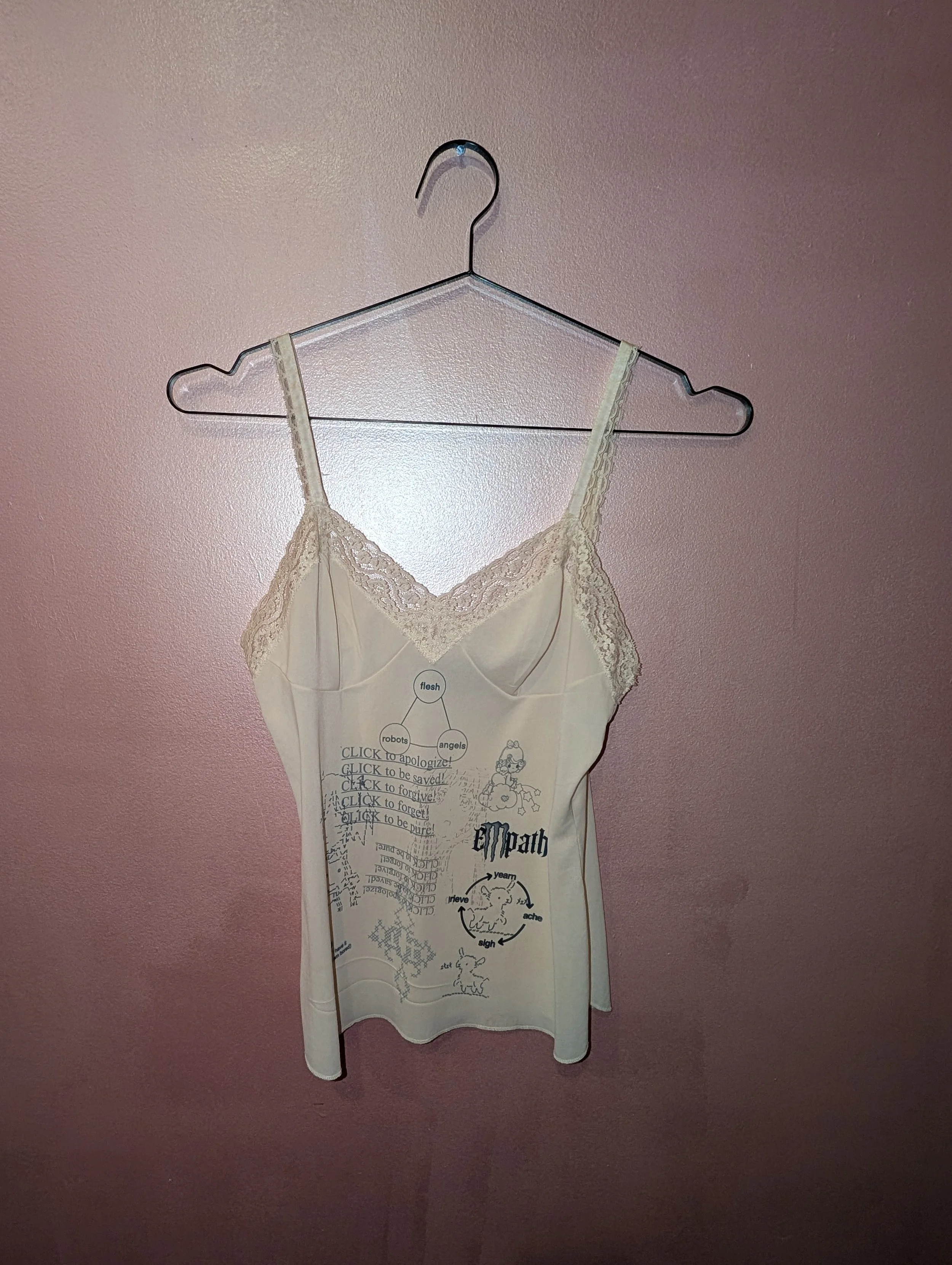 Nostalgia of mud was born from a girl in her room exploring her inner playground. Metalwork, illustration, image transfer, and ceramics are a means to explore a whimsically morbid realm with themes of isolation, decay, rebirth, and play. This special place is shared with others through decorative objects, stationary, printed tights, upcycled vintage, and more.