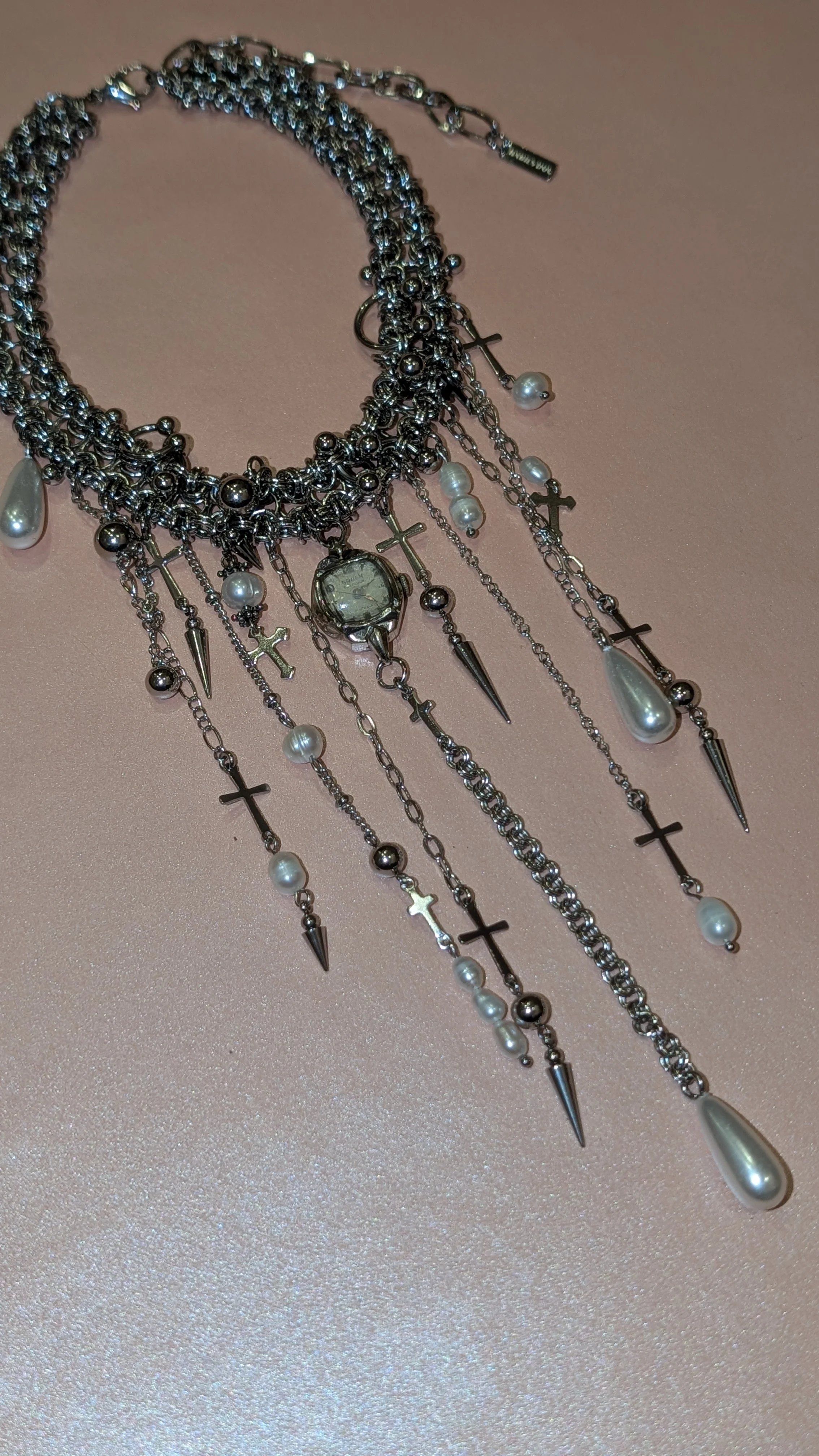 rabies dog › rabies dog Gothic Maximalist Necklace Image 1 of 2 Image 2 of 2 rabies dog Gothic Maximalist Necklace $548.00 stainless steel, repurposed cocktail watch, imitation pearls, freshwater pearls Add To Cart Added! stainless steel, repurposed cocktail watch, imitation pearls, freshwater pearls