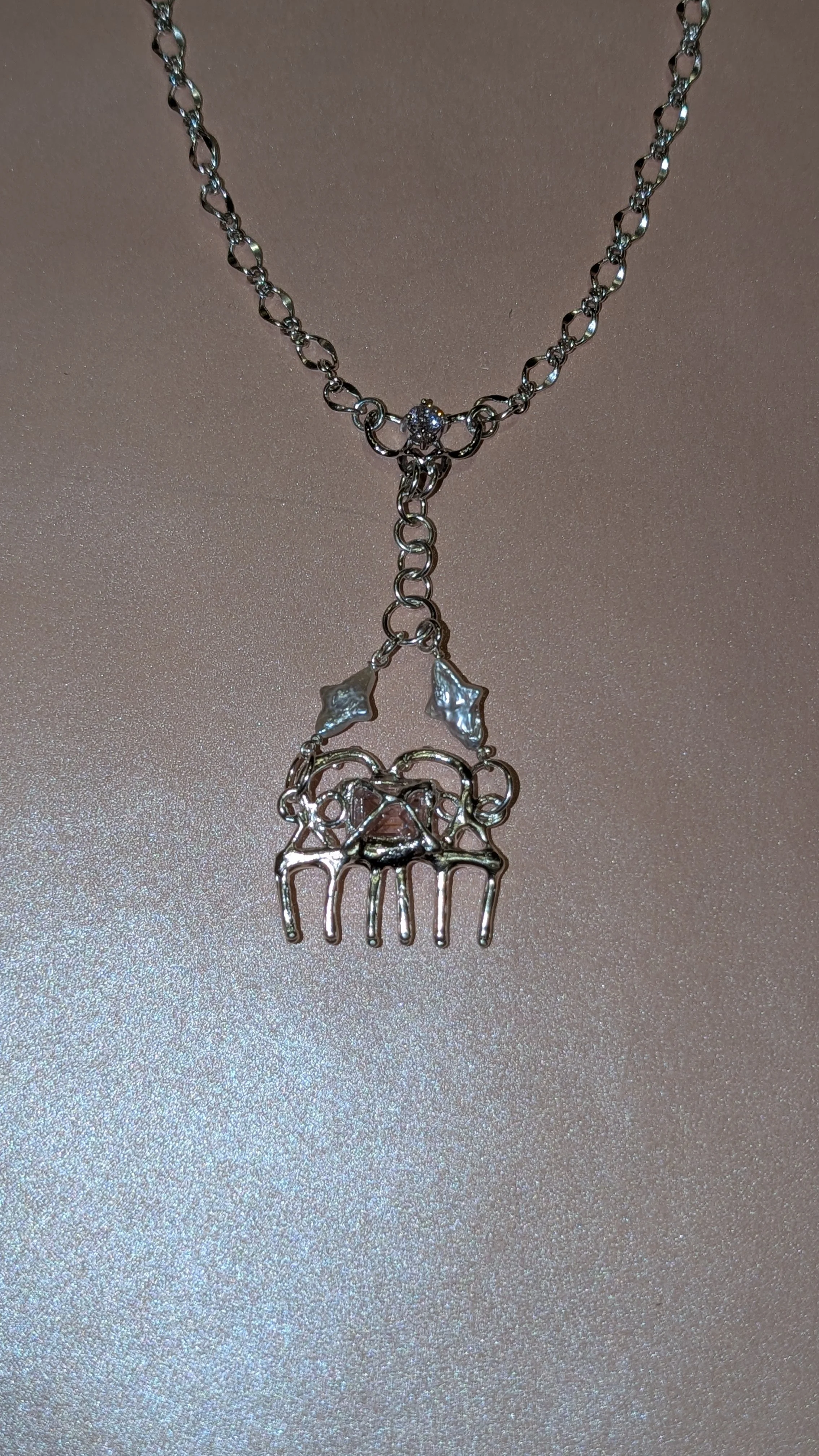 rabies dog › rabies dog Silver Maiden Comb Necklace Image 1 of 2 Image 2 of 2 rabies dog Silver Maiden Comb Necklace $628.00 sterling silver, cross pearl, Pink Zircon Add To Cart Added! sterling silver, cross pearl, Pink Zircon