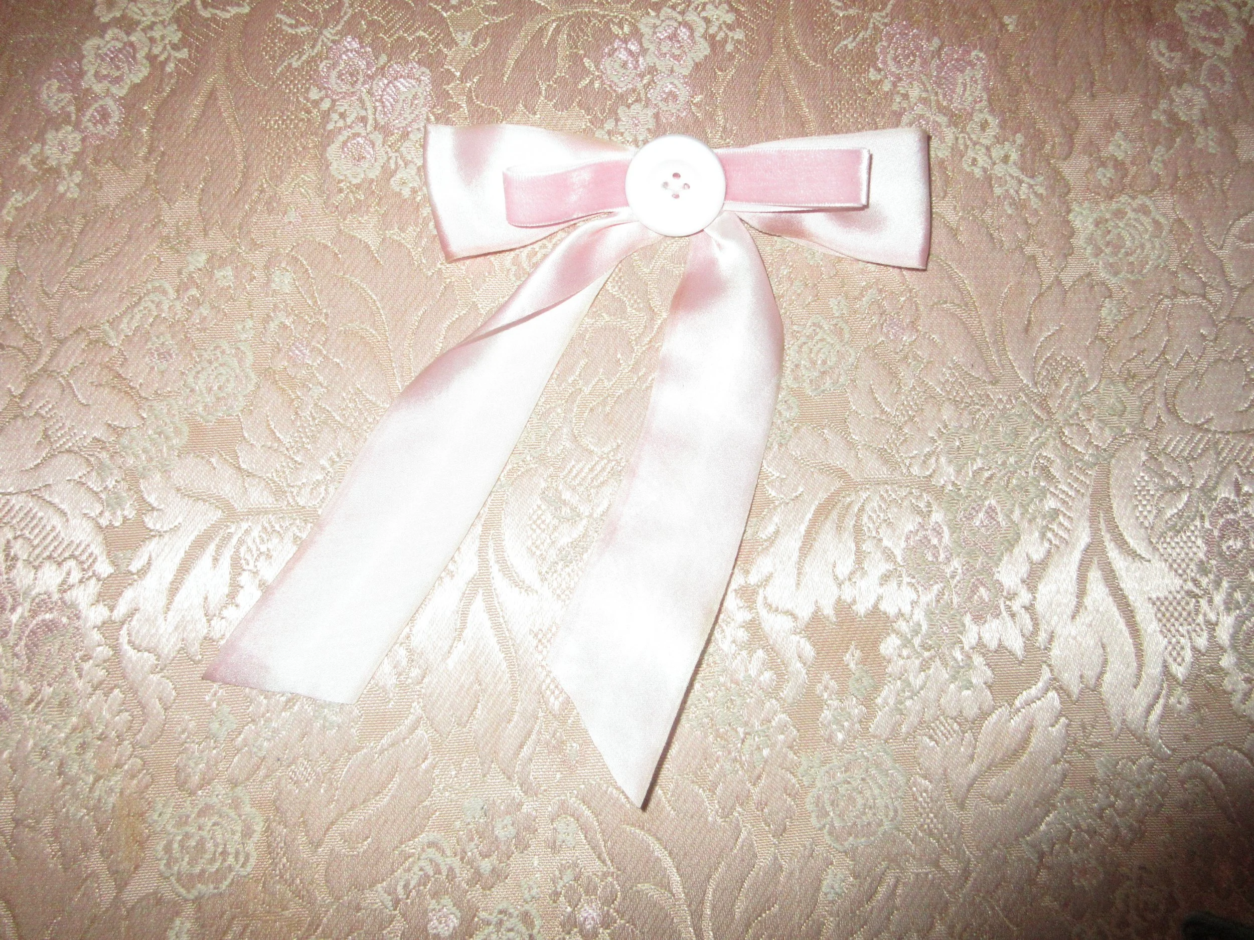 VENUS › Venus Bow Hairclip w/ Rare Vintage Silk & Pink Velvet Ribbon & White Button (Single) Image 1 of 1 Venus Bow Hairclip w/ Rare Vintage Silk & Pink Velvet Ribbon & White Button (Single) $75.00 Add To Cart Added!